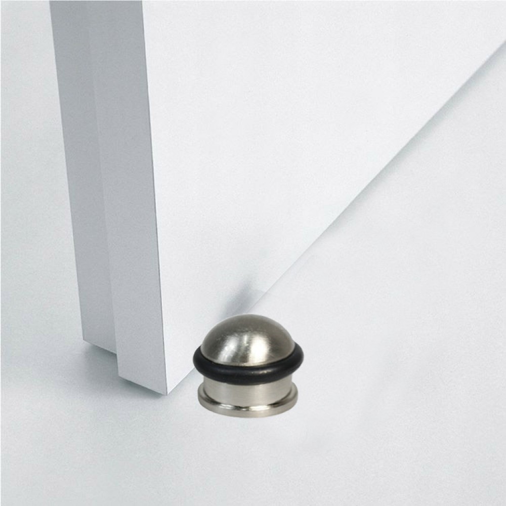Fermaporta da pavimento in acciaio con protezione in gomma