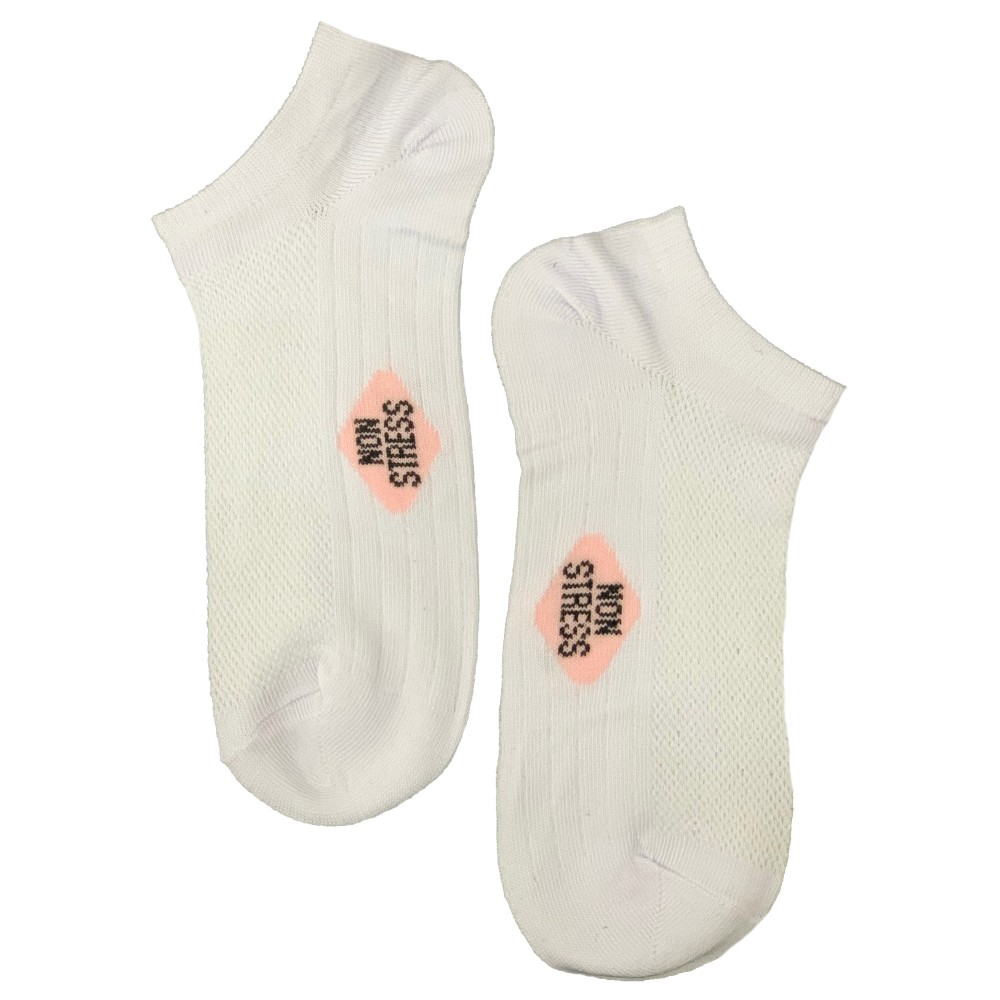 Calzino da donna NO STRESS con logo rosa in cotone tinta unita, con polsino elasticizzato.