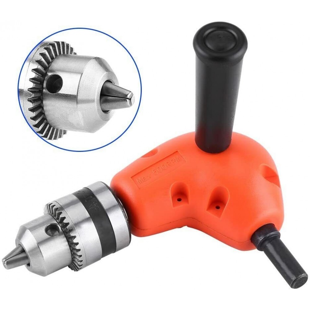 Adattatore ad angolo retto per trapano con serraggio Mandrino di Bloccaggio Limite 1-10mm Gambo Rotondo 9,5 mm.