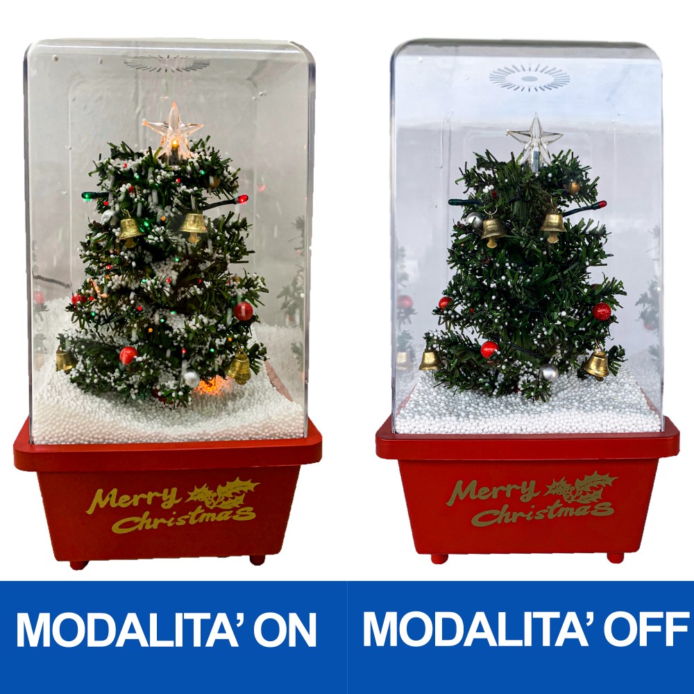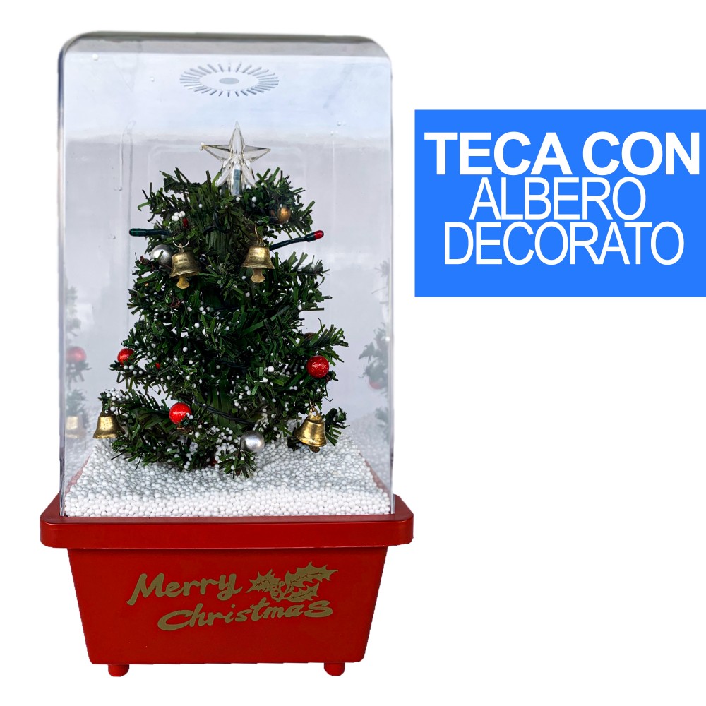 Teca per addobbi natalizi, con coperchio in plexigrass e base in plastica dura.