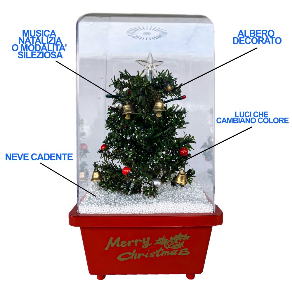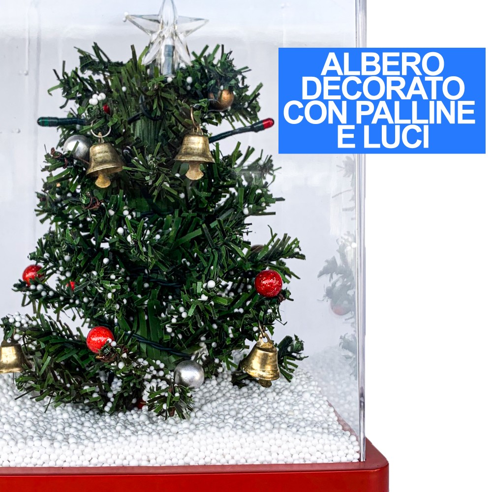 Effetto neve cadente con luci e musica per rendere ancora vivo lo spirito natalizio.