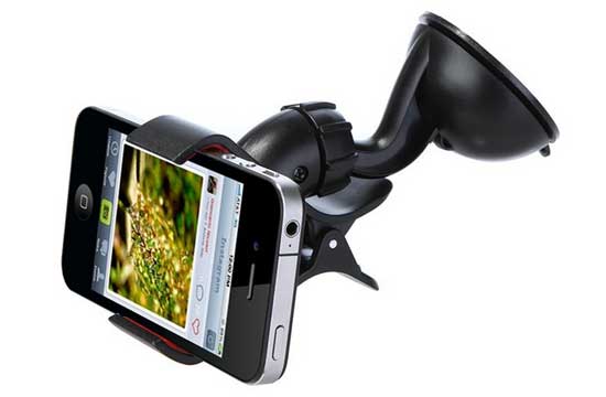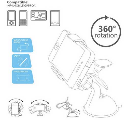 Supporto auto a pinza da fissare al parabrezza e bloccare il vostro smartphone, navigatore, Mp4. durante la guida.