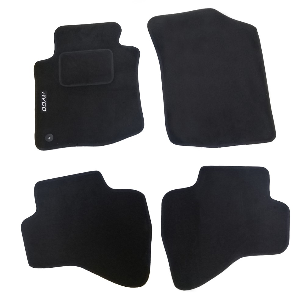 Set tappeti auto su misura in moquette con battitacco in plastica, anteriori e posteriori, con logo ricamato sul tappetino anteriore lato guida.
