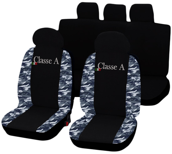 Coprisedili specifici per Classe A bicolore in cotone e poliestere di fabbricazione italiana.