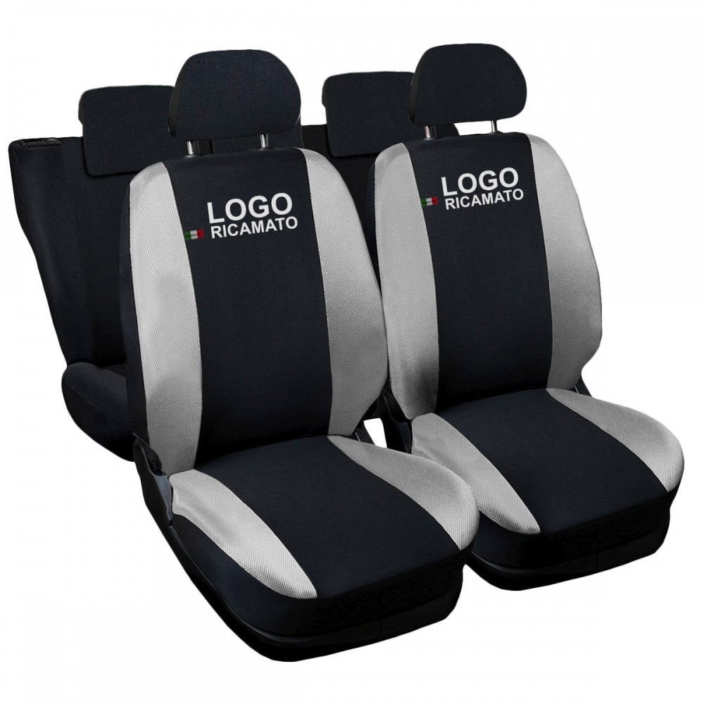 Set composto da: 4 Coprisedili anteriori (Schienale 2pz + seduta 2pz), 3 Coprisedili posteriori (Schienale 2pz + seduta), 5 Poggiatesta.