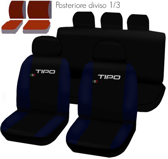 Coprisedili specifici bicolore per Fiat Tipo con sedili posteriori divisibili 1/3.
