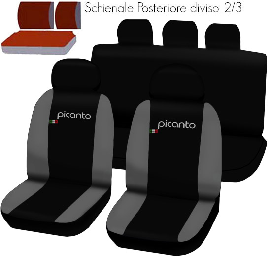 Coprisedili compatibili per Kia Picanto con posteriori divisi 2/3 (solo schienale).