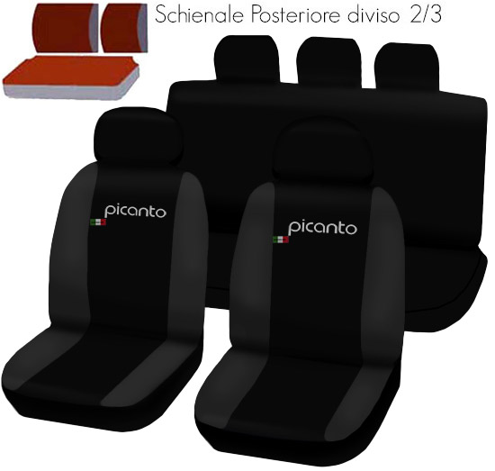 Coprisedili compatibili per Kia Picanto con posteriori divisi 2/3 (solo schienale).