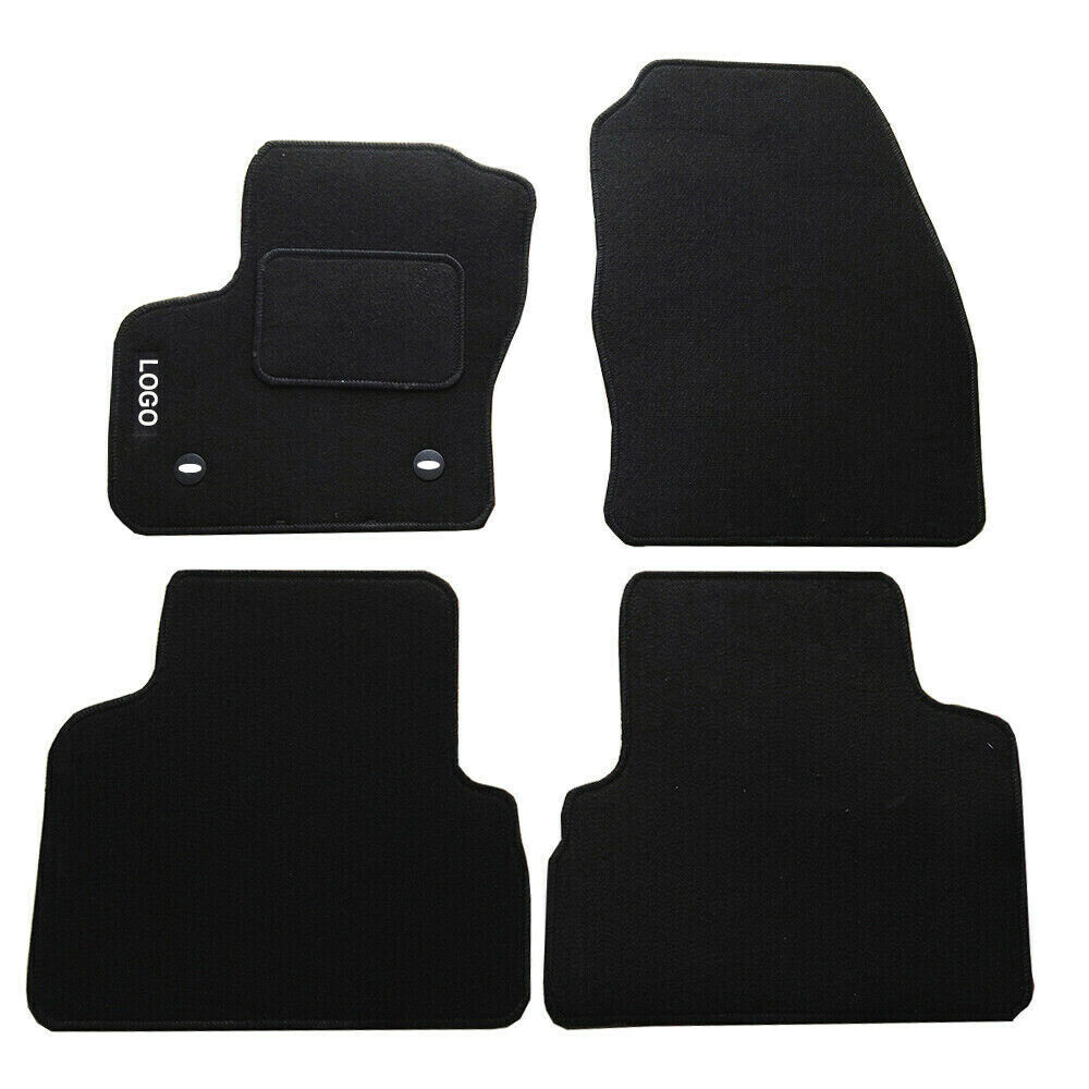 Set tappeti auto su misura in moquette con battitacco in plastica, anteriori e posteriori, con logo ricamato sul tappetino anteriore lato guida.