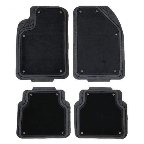 Tappetini universali in pvc e moquette per auto, sagomabili, con fondo antiscivolo, lavabili a getto d'acqua. Con moquette staccabile (applicata con pratiche clip). Ideale per tutte le stagioni. Completo di 4pz (2 anteriori e 2 posteriori)