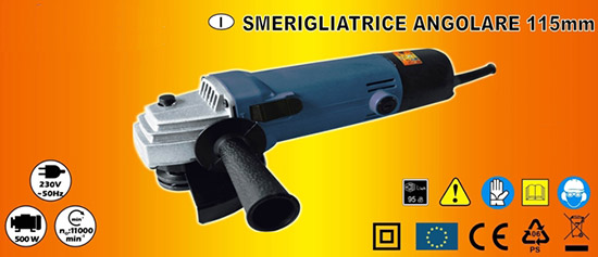 Smerigliatrice angolare da 115 mm, Potenza 500 W + Disco Diamantato IN OMAGGIO.
