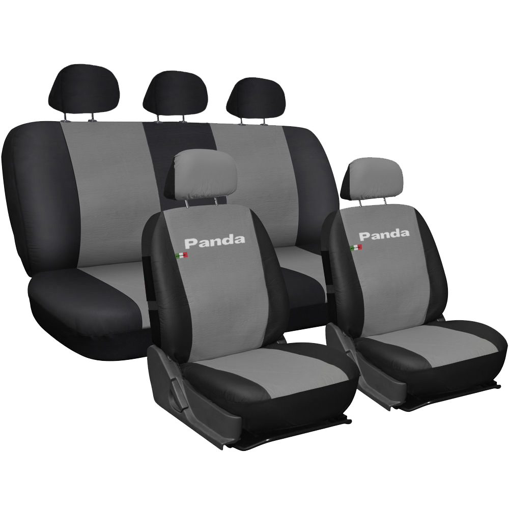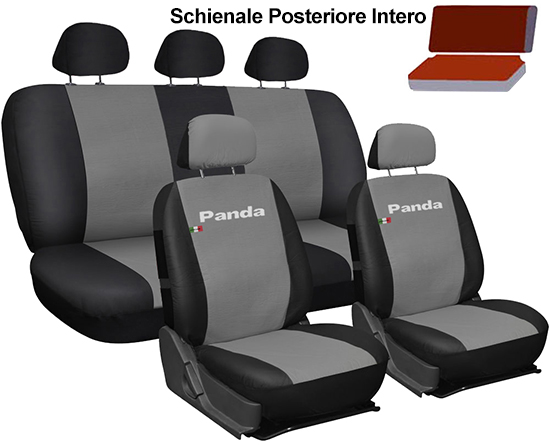 Coprisedili Fiat Panda In Ecopelle Con Posteriore Intero Grigio Chiaro - Nero
