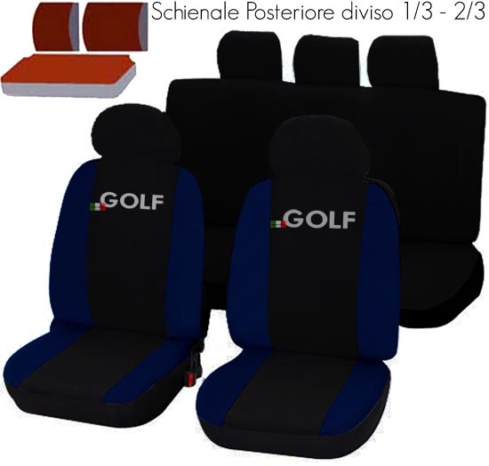 Coprisedili specifici per Golf con posteriori divisibili 1/3.