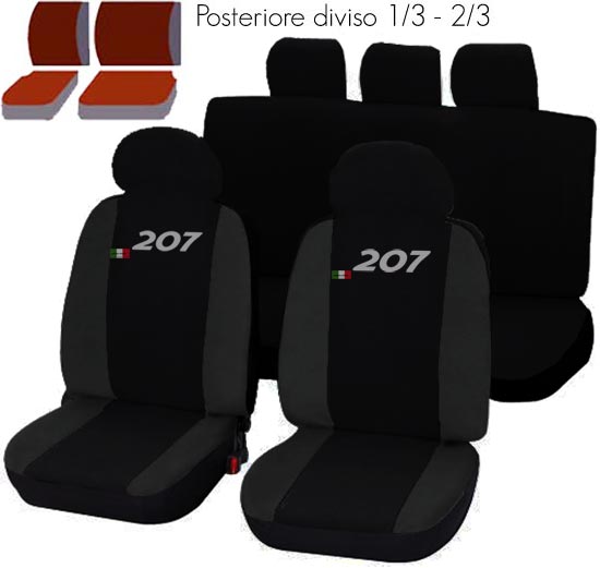 Coprisedili specifici per Peugeot 207 con posteriori divisibili 1/3.