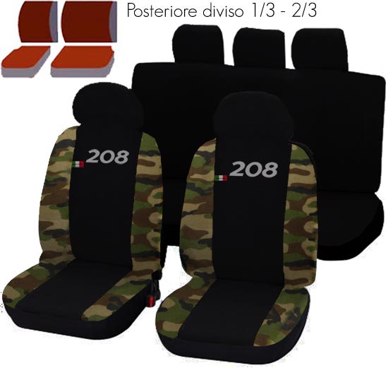 Coprisedili Compatibili Per 208 Bicolore Nero - Mimetico Classico