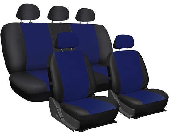 Coprisedili universali in ecopelle centrale e tessuto acrilico nei lati con maglina elasticizzata nella parte posteriore.