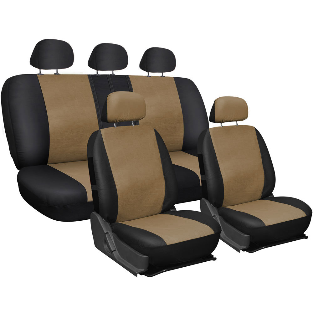 Coprisedili universali in ecopelle centrale e tessuto acrilico nei lati con maglina elasticizzata nella parte posteriore.