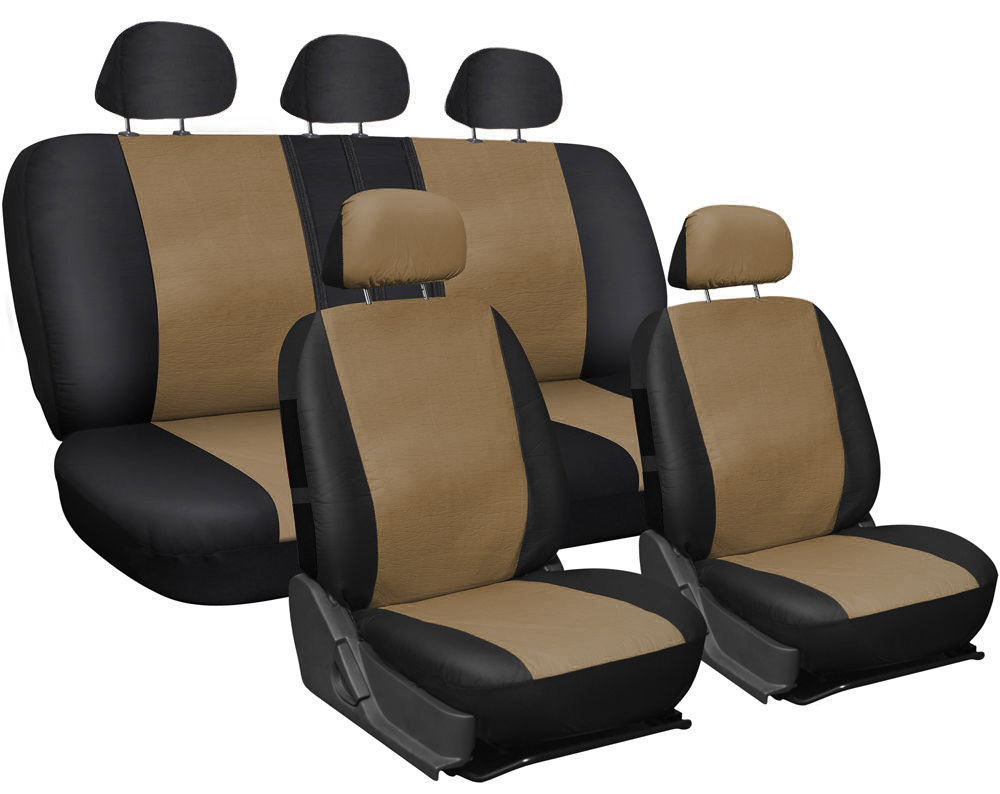 Coprisedili universali in ecopelle centrale e tessuto acrilico nei lati con maglina elasticizzata nella parte posteriore.