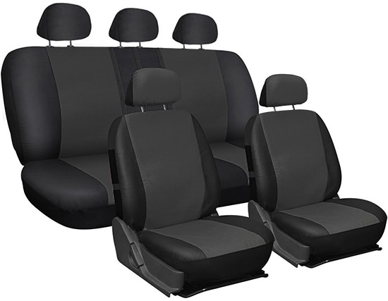 Coprisedili Universali In Ecopelle Grigio Scuro - Nero