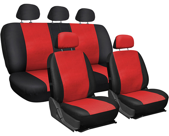 Coprisedili universali in ecopelle centrale e tessuto acrilico nei lati con maglina elasticizzata nella parte posteriore.