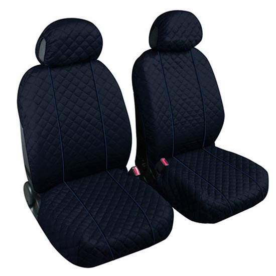 Coprisedili universali 2 posti anteriori in cotone e poliestere accoppiato di fabbricazione italiana, con imbottitura trapuntata più tessuto elasticizzato nella parte posteriore.