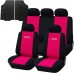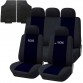Coprisedili universali in tessuto acrilico accoppiato nero al centro, ai lati tessuto cotone colorato e parte posterione in maglina nera adattabili a tutte le auto con sedili standard.