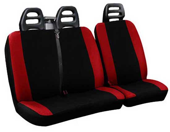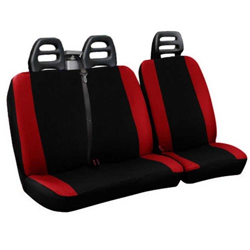 Coprisedili Per Furgone 3 Posti Cotone Bicolore Nero Rosso - Cintura Alta