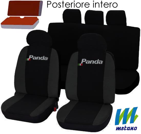Coprisedili specifici per Fiat Panda 4 posti a metano con posteriori intero e attacco cinture al centro.