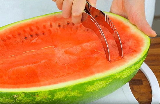 Innovativo ed intelligente taglia fette di anguria, coltello con cui potrai tagliare e servire l'anguria in modo rapido e pulito.