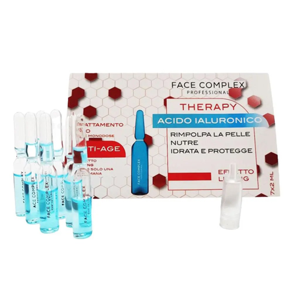 Ampolle rimpolpanti Face Complex all'Acido Ialuronico un trattamento intensivo di sette giorni formulato con acido ialuronico puro per rimpolpare, idratare E rivitalizzare intensamente la pelle.