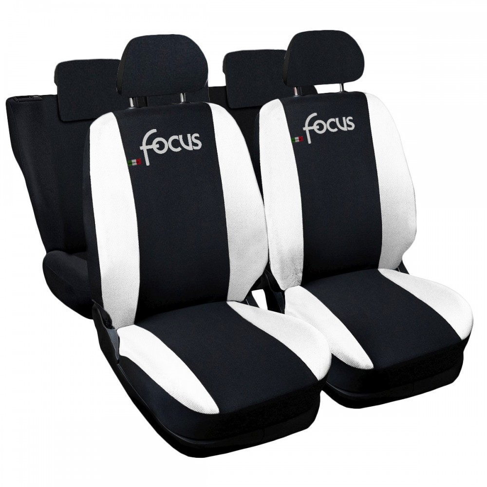 Coprisedili Auto Compatibili Focus Hybrid Nero/Bianco | Made In Italy | Set CopriSedile Anteriori e Posteriori | Copri Poggiatesta Incluso | Accessori Interni