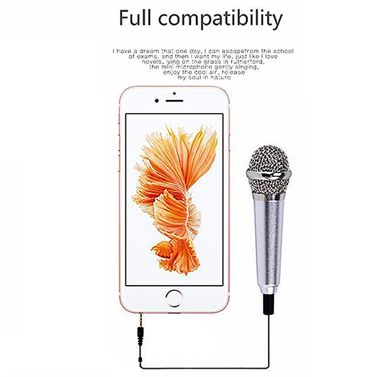 Il microfono ha un 3.5 mm jack che è compatibile con i dispositivi: iPhone, iPad, iPod Touch, Android & Windows smartphone e molti altri dispositivi tablet e smartphone.