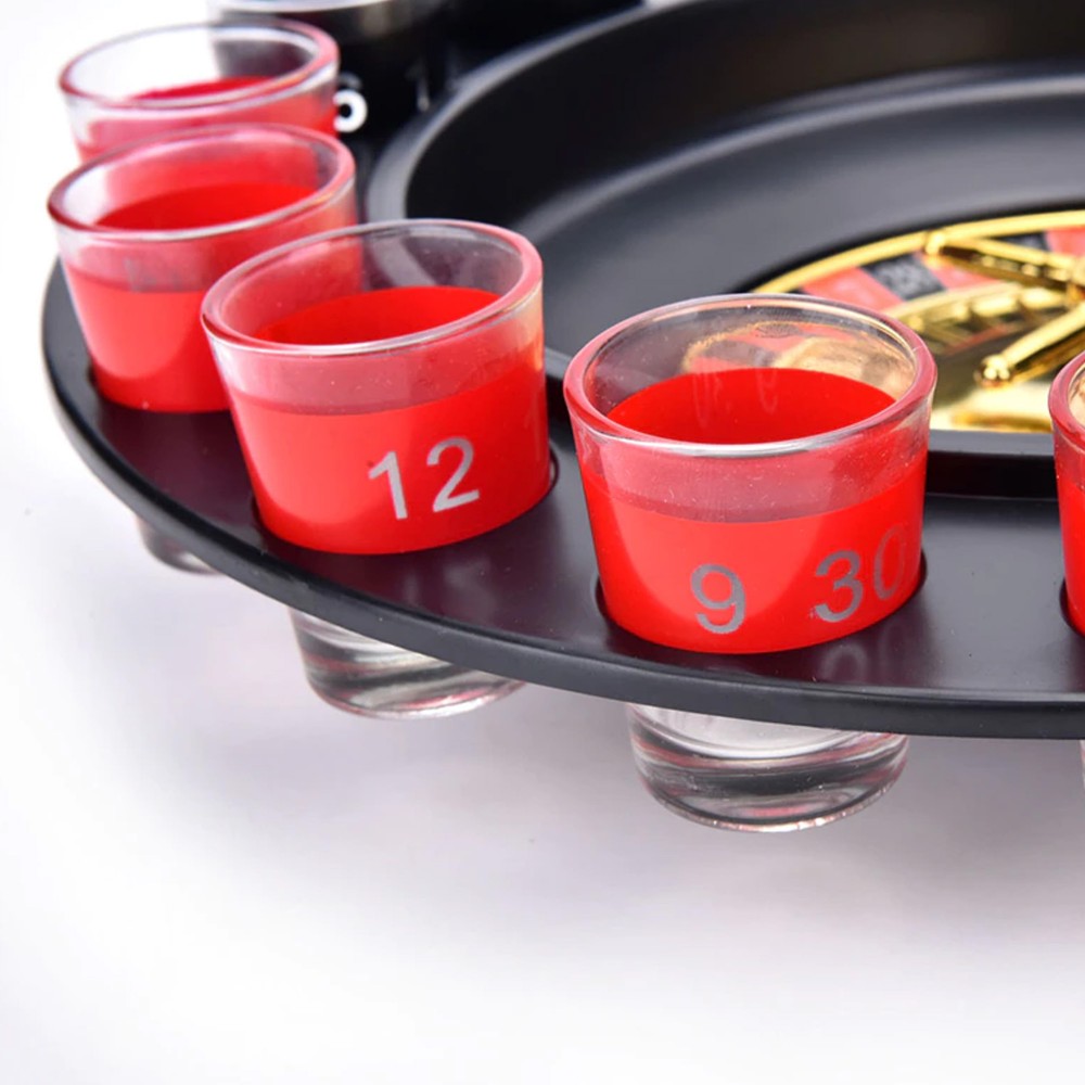 Scalda l’atmosfera della festa con questa roulette alcolica. Segue il principio della famosa roulette russa, solo che con il colore o il numero giusto invece delle fiches avrai degli shottini da bere. Sono inclusi bicchierini in vetro, 8 rossi e 8 neri. Questi possono essere riempiti con bevande alcoliche o anche analcoliche. Non importa quale regola si scelga: questo gioco movimenterà in ogni caso la festa e ti regalerà momenti indimenticabili.