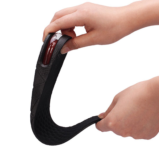 Grazie alla morbidezza del materiale, il tallone viene sollevato senza sforzo.