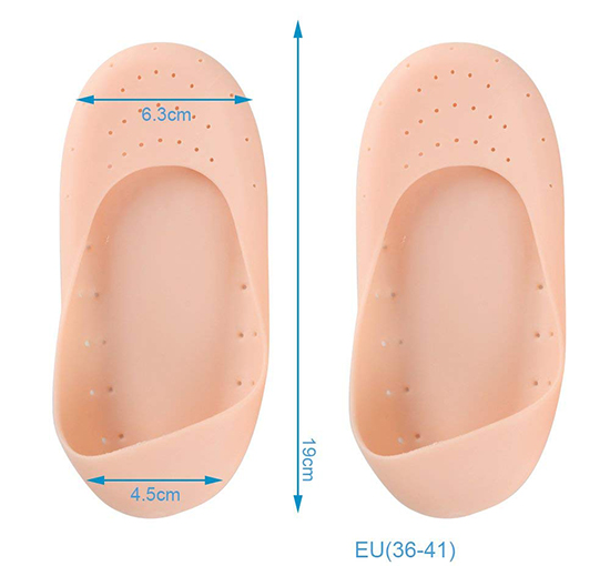 La suola del piede viene solitamente ignorata, strettamente legata alla stagione, la pelle diventa più dura e più spessa, il risultato può essere dolore al tallone e ai piedi. Le calze in silicone Smiling foot, non solo mantengono l'umidità, ma hanno anche un grande effetto anti-microbico. Goditi la pelle morbida e bella tenere lontano da oggetti appuntiti. Qualsiasi oggetto appuntito potrebbe danneggiare i piedini in silicone. Conservare lontano dalla luce solare diretta e usare sapone o shampoo con acqua tiepida per lavare delicatamente a mano. E' utilizzata dalle donne. Nb: Interrompere l'uso se si verificano irritazioni cutanee (gonfiore, prurito o dolore)