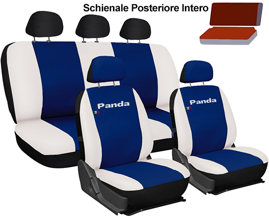 Coprisedili Fiat Panda In Ecopelle Con Posteriore Intero Blu Royal - Bianco