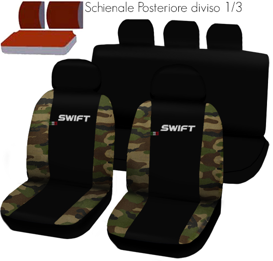 Coprisedili specifici per Suzuki Swift con posteriori divisi 1/3 (solo schienale).