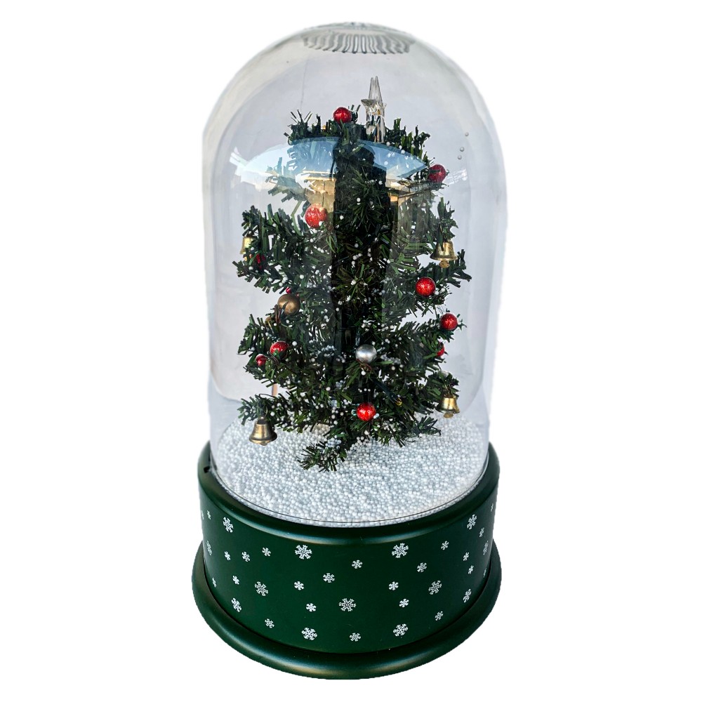 Teca Natalizia Con Albero Di Natale Con Palline, Con Neve E Musica.