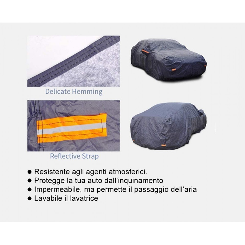 Telo copriauto felpato realizzato in materiale impermeabile al 100% e mantiene fresco all'interno, protegge dall'inquinamento e dai raggi UV.