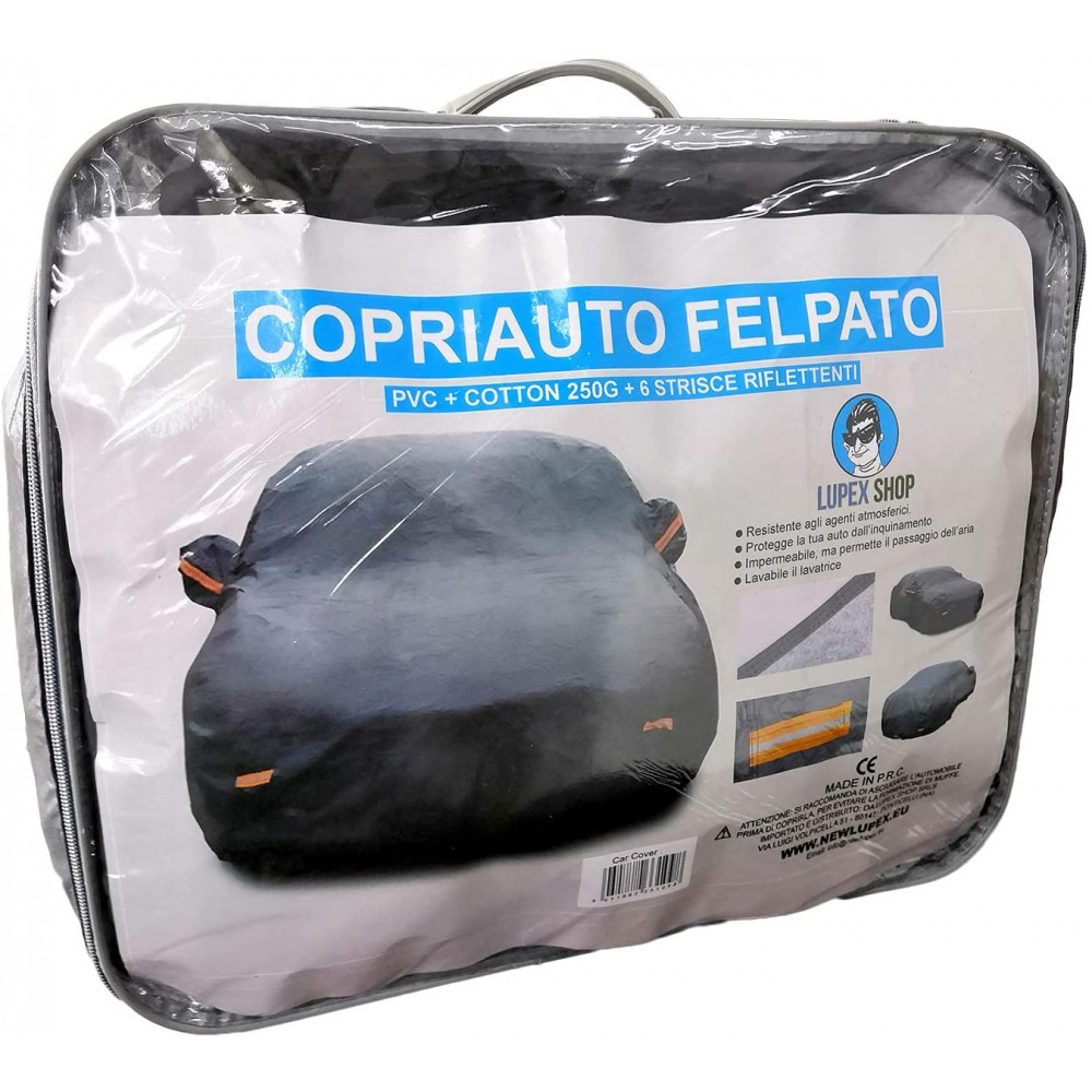 Copriauto felpato 250g realizzato in materiale impermeabile 100% con interno felpato cosi da evitare graffi inaspettati sull'auto.