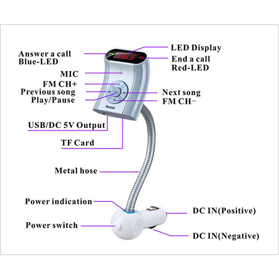 Bluetooth da auto con braccio flessibile per impostarlo in qualunque posizione.