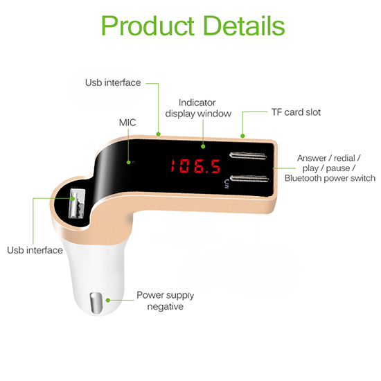 Bluetooth trasmettitore FM:puoi ascoltare la musica di telefoni cellulari/TF card.