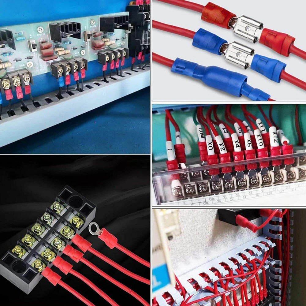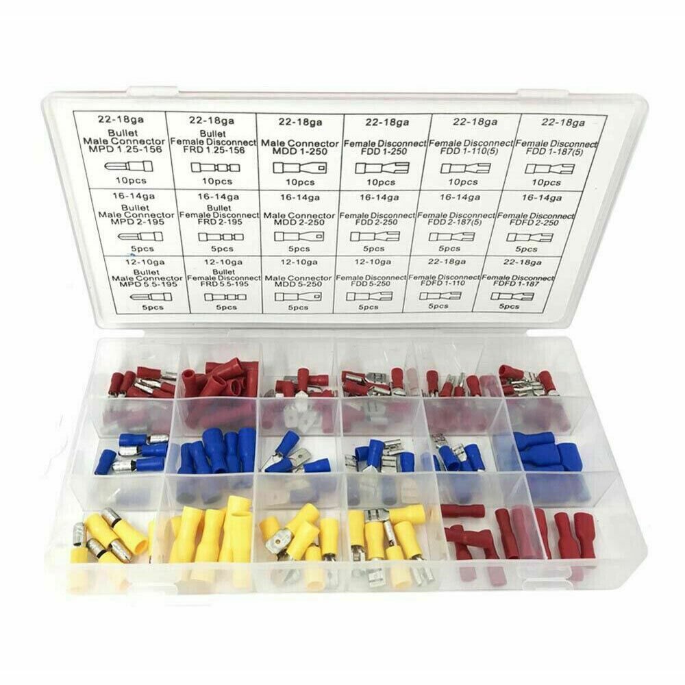 Kit di capicorda terminali preisolati per cavi elettrici di 18 misure diverse per rapide riparazioni elettriche.