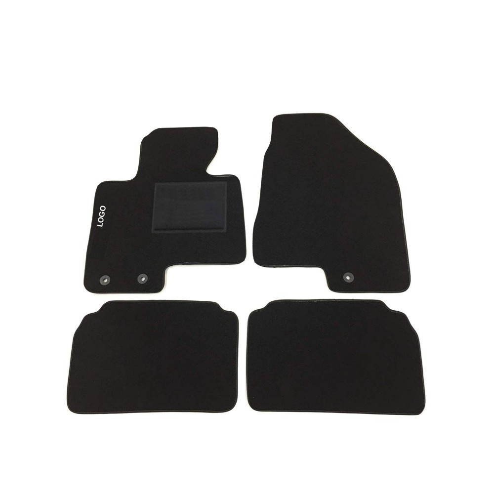 Set tappeti auto su misura in moquette con battitacco in plastica, anteriori e posteriori, con logo ricamato sul tappetino anteriore lato guida.